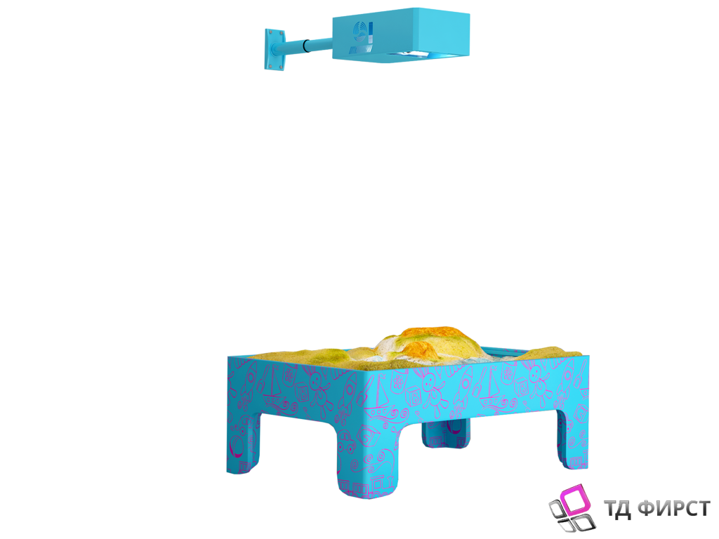 Управляющий компьютер+проектор (3500Lm) Датчик глубины Программное обеспечение Акустическая система Набор фигурок и формочек и элементов ландшафта Крышка с маркерной поверхностью Размер стола 1,6*1,2м.(или маленький 98х134см по желанию). Стол белый Песок — мытый каленый 120 кг; Гарантия12 мес. |