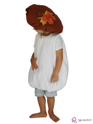 Карнавальный костюм Боровик состоит из комбинезончика, выполненного из флиса и подбитого синтепоном. Комбинезончик посажен на подкладку из хлопчатобумажной ткани. Дополняет костюм шикарная шапка гриба-боровика, украшенная осенним листиком.
