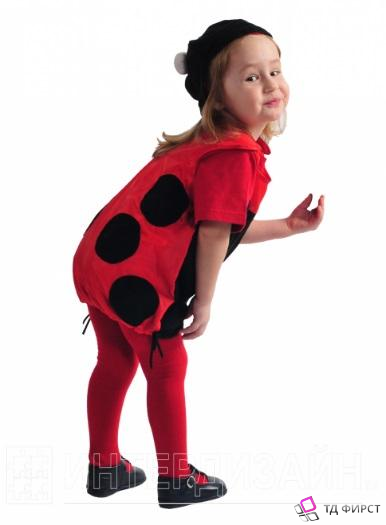 Детский карнавальный костюм Божья коровка состоит из комбинезончика и шапочки. На комбинезон нашиты пятнышки. Комбинезон затягивается на ножке шнурочком. Очень симпатичный и удобный карнавальный костюм для малышей и малышек.