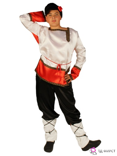 Традиционные народные русские костюмы сподвигли наших художников на создание костюма в традиционном русском стиле. Русский народный костюм для мальчика «Иванушка» выполнен из крепсатина, габардина, тафеты и тиси традиционных цветов. Костюм состоит из белой рубашки-косоворотки, брюк, картуза и пояса. Рубашка-косоворотка украшена жаккардовой лентой.