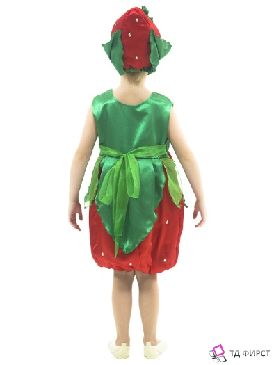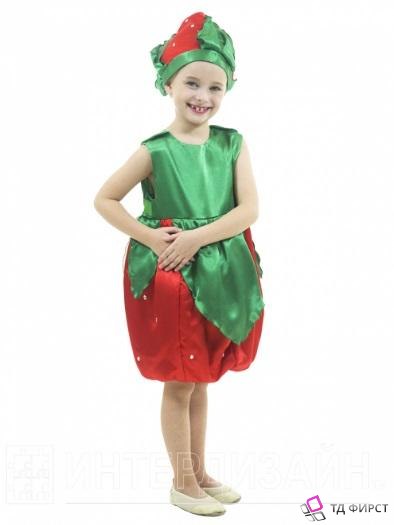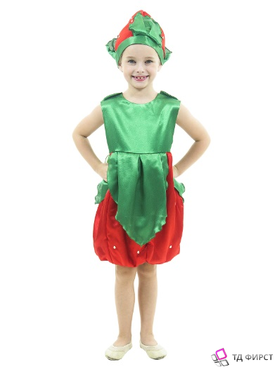Костюм состоит из платья с шикарными лепестками-листиками в виде баски. Платье на плечах застегивается на липучки. Завершает образ красивая шапочка, подбитая синтепоном и посаженная на подкладку из хлопчатобумажной ткани.