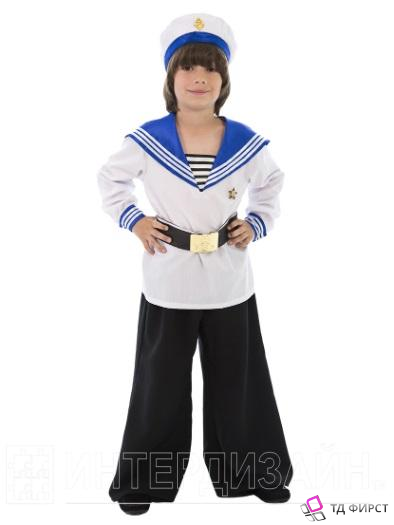 Карнавальный костюм «Матрос» создан в соответствии с представлениями о парадной форме матроса, сформированными советскими мультфильмами. Ярко-синий гюйс (оригинальный матросский воротник) украшает стильную белую рубашку с имитацией тельняшки. Черные брюки-клеш собираются по талии на резинку. В комплект входит ремень с настоящей пряжкой, который регулируется по ширине. Белая бескозырка с ярко-синими лентами и золотым якорем по центру завершает образ бравого матроса, отважного моряка. Парадная форма матроса - это лицо корабля, лицо флота, это символ благородства и служения Отечеству. Носить ее всегда престижно. Орден в комплект на входит, поставляется отдельно. Рекомендуем дополнить комплект белыми или черными носочками и черными ботинками или чешками.