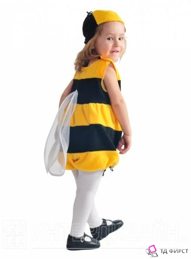 Детский карнавальный костюм Пчелка произведен в России. Костюм состоит из полосатого комбинезончика с крылышками и шапочки.