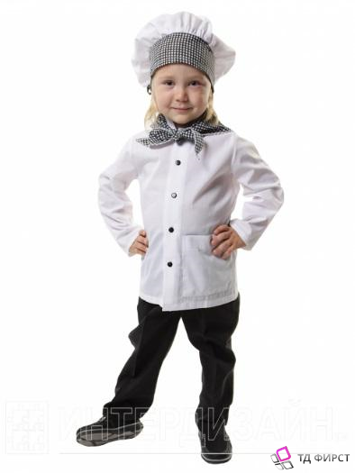 Детский карнавальный костюм Поваренок один из самых популярных костюмов. Костюм состоит из кителя, колпака и шейного платка. Карнавальный костюм Поваренок выполнен из хлопчатобумажной ткани - тиси - благодаря чему он очень комфортен при носке.
