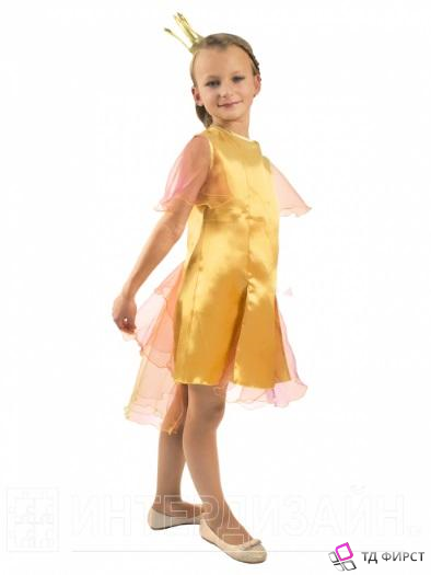 Детский карнавальный костюм Золотая Рыбка создан по мотивам одноименной сказки. в комплект входит золотое платье со вставками из органзы и корона.