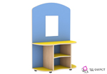 В двух цветовых сочетаниях: стойки бук-натур, фасады светло-синие, полки желтые ИЛИ стойки бук-натур, фасады манго, полки салатовые