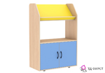 В двух цветовых сочетаниях: стойки бук-натур, фасады светло-синие, полки желтые ИЛИ стойки бук-натур, фасады манго, полки салатовые